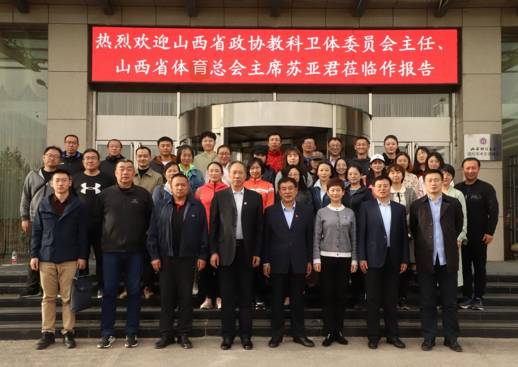 最后,我校党委书记常乃军对苏亚君局长讲座做出高度评价:“苏局长以很高的站位,从人生、从文化、从体育等各个角度,给我们上了一堂生动的山西体育事业发展史课、体育精神教育课。我们从他的事迹当中我们可以看到浓浓的体育情,浓浓的人间情。奥运会蹦床世界冠军董栋亲切地喊他“苏爸爸”,我觉得这是一堂人生课,也是一个历史教育课,我们能从他体育局长12年的经历当中看到山西省体育的改革发展,我们能从他一件一件从事体育的活动当中看到他人生的大度,这是我们这堂课应该达到的目的。大家可能不知道,苏局长在之前体育工作中曾获得过山西省委山西省人民政府授予的先进工作者、个人一等功等荣誉称号。所以,他在长期从事各方面的研究,特别对体育方面的研究尤为重点,他的《诗华》实际上是他真实人生的反应,也是他文采的集中体现。这是一堂非常有意义的课,大家都受益匪浅,我听课很受感动,并且能够在其他大学引起反响,我想这不是他一朝一夕能够形成的,是他一直以来那种精神的不断积累所形成的。有他这样的体育人,我们山西的体育就有希望,在他在任的这些年里,山西的体育有了很大的变化,无论是场馆的变化,还是体育竞技的变化,还是大众体育的变化都非常的明显。我们在座的大部分都是体育人,我也是体育人,怎样能把这种体育的人生升华为美丽的人生,升华自己的价值观,是我们每一个体育人都应该做的。体育人要走到舞台中央,必需靠自身的努力,就像苏局长一样,兢兢业业,任劳任怨,持之以恒的把这项工作坚持下来,我们都像他一样的坚持,我们就不愁山西的体育发展不起来,我们就不愁中国的体育发展不起来,所以这是我们这堂课应该得到的启示。在座的各位都应该向他学习,图强报国,坚持我们的体育精神,按照省委的“四为四高两同步”总体部署,干在实处、走在前列,为“体育山西、健康山西、幸福山西”建设贡献力量”。讲座在全场热烈的掌声中圆满结束。