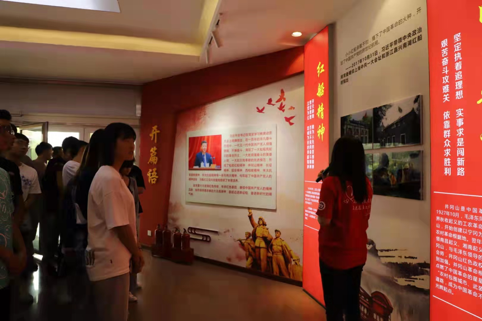 红馆”。随着讲解员的脚步,参观人员乘“红船”启航,探索“红船精神”、井冈山精神、太行精神、吕梁精神和伟大抗疫精神等中国共产党精神实质,深入领悟党的百年奋斗史和中国共产党人的初心使命,深入体会中国共产党精神的核心要义和时代价值,厚植爱国主义情怀。