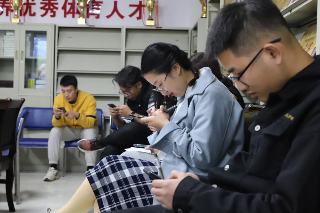 本次活动有三项活动内容。首先,是“红色记忆·白色抗疫”知识竞赛,这次竞赛本着深入贯彻落实习近平总书记关于党史、新中国史、改革开放史、社会主义发展史学习及新冠肺炎疫情防控工作的重要讲话和指示精神,持续深化爱国主义教育的目的而开展。采取线上“学习强国”APP答题,题型6种,当主持人宣布开始答题后开始答题,答题结束举手示意,第五名同学举手代表比赛结束,按照成绩排名,成绩相同按照用时长短排名,取前两名有奖励,因为规则的机制,整场竞赛欢快而热烈,充满生机与朝气,每个人激情似火、争先恐后的举起自己充满代表知识的小手,竞赛就在这样紧张激烈的气氛中度过……活动第二项,是对竞赛优胜者和“三晋先锋”学习之星进行颁奖。活动第三项,全部党员学习贯彻党的十九届五中全会精神。