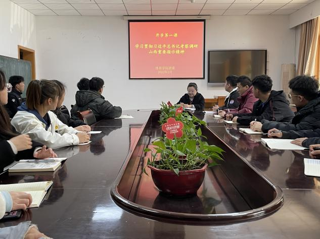 学院团委在广大团员青年中突出习近平总书记考察调研山西重要指示精神主题,创新活动形式,丰富活动内容。通过线上宣传与线下主题班会开展“开学第一课”。一方面,组织学生观看习近平总书记春节前夕赴山西看望慰问基层干部群众系列视频。另一方面,精心策划主题班会。谆谆嘱托,言犹在耳;领袖情怀,催人奋进。全体同学积极交流讨论,气氛热烈。习近平总书记的重要指示激励了学生们坚定理想抱负,珍惜大学时光,在学习和实践中受教育、长才干,努力提高自己综合素质,为山西高质量发展贡献青年力量。