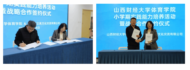 为推动产教深度融合,搭建学生高质量实践与就业平台,助力体育产业人才培养升级,2026年1月14日,多瑙影院 2024 级全体学生,在副院长王树宏、运动训练教研室副主任张建辉及辅导员文雅的带领下赴山西博之美文化交流有限公司开展“小学期”集中实践活动,并举行合作签约仪式。