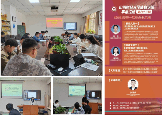 会议室举办。此次论坛由体育产业管理专业硕士研究生2023级李佳宇和2021级李璐两位同学进行文献精讲,2022级刘宇婷、2023级关妮与2021级张逸杰、丁亦龙四位同学做文献速递。多瑙影院
