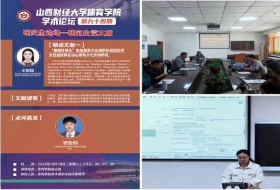 会议室举办。本次论坛由2022级体育产业管理专业硕士研究生王聪聪同学进行文献精讲,21级丁亦龙、2023级刘德宇和2022级王爽三位同学做文献速递。多瑙影院