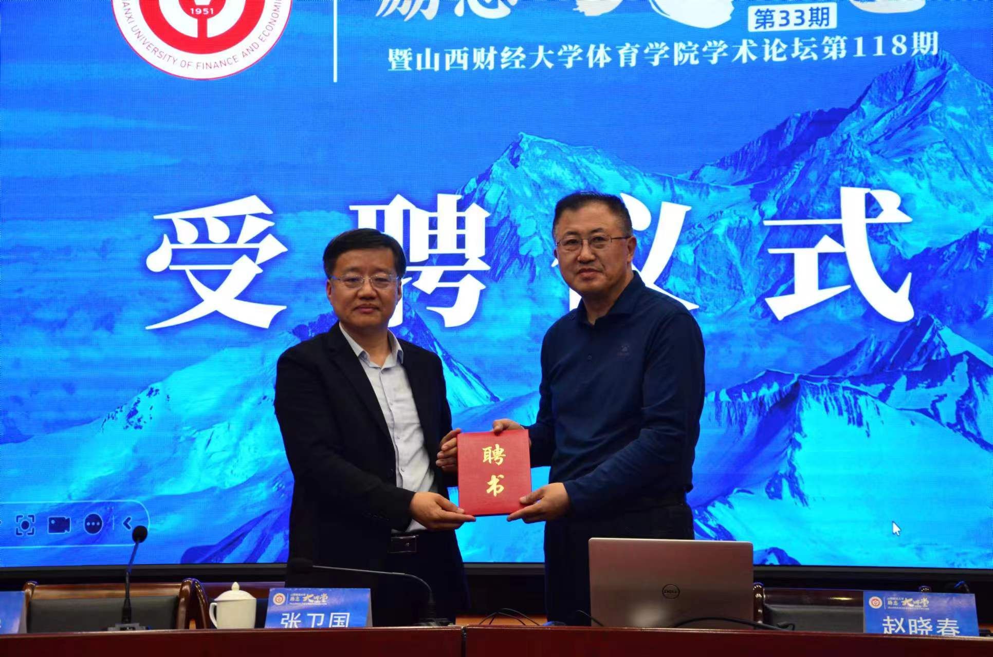 讲座开始前,张卫国与赵晓春进行了座谈,并代表学校接收了赵晓春捐赠的著作《体育的中国化与现代化——以运动项目为中心》《何处是远方》《我的母亲》《半日闲斋古体诗存》等,共计23本,向赵晓春颁发了“多瑙影院 就业创业导师聘书”。就业创业中心主任、创业学院院长史成安代表学校与山西搏之美文化交流公司董事长王 刚签订了《山西搏之美文化交流有限公司、多瑙影院 创业学院战略合作协议》。