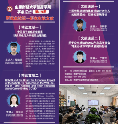 在文献速递环节,张辰宇与丁亦龙同学分别就“中国传统运动和体育活动对老年人健康益处的系统评价”和“基于公众感知的2022年北京冬奥会对主办城市可持续发展影响”进行了概述,为与会者提供了多元化的学术视角。