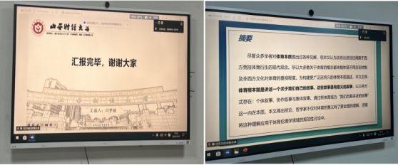 在文献精读环节,24级闫梦焕同学通过线上汇报围绕《一级方程式行业中的组织经验和成本削减协议:一种动态能力视角》进行分享。她介绍,该文献以动态能力理论为核心框架——作为资源基础观的延伸,动态能力理论将“稀缺、不可模仿的资源带来可持续竞争优势” 的传统认知,拓展至动态环境研究。23级付芳芳同学通过线上分享约翰・格里夫斯发表的经典文献《运动作为有意义的叙事》,她指出该文献从哲学视角重构“运动”本质:运动并非单纯的身体竞技,更是人类通过身体实践传递“自我身份”的叙事载体,其意义体现在个体、协作、集体三个层面的叙事构建中。