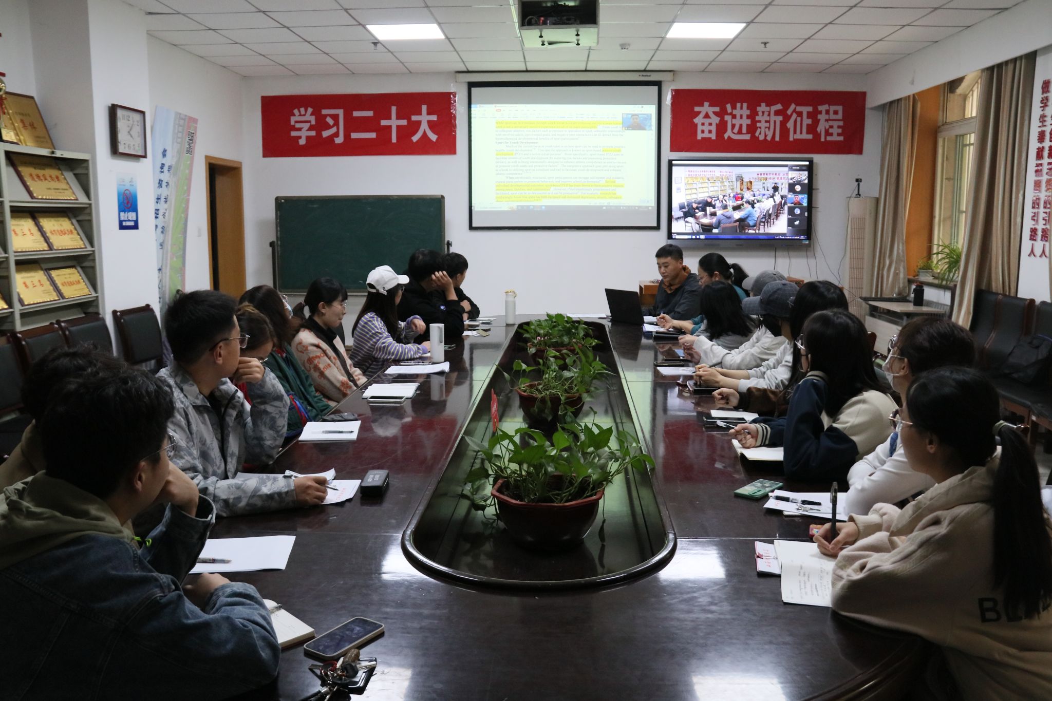 10月20日下午,多瑙影院 系列学术讲座五十八期暨研究生论坛在学院会议室通过线下和线上腾讯会议顺利举行。本次论坛由张新英老师主持,由2020级体育产业管理专业研究生王欣宇和张雪儿两位同学进行文献精讲,参加本次会议的有多瑙影院 部分教师和全体研究生。