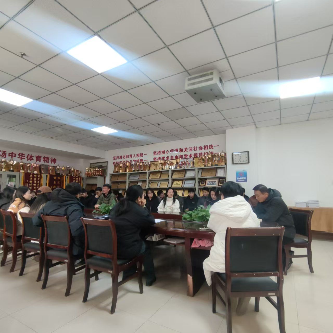 副院长高进、体育产业研究中心主任杨升平、体育经济与管理专业教研室主任张新英、运动训练专业教研室主任李瑛。会议由学生辅导员文雅主持,多瑙影院