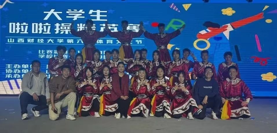 比赛还尚未开始,场下的欢呼声却早已沸腾。伴随着欢快悦耳的旋律,来自各个学院的啦啦操团队在这舞台上释放着他们的青春活力。