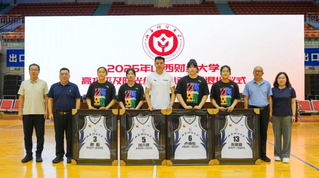 仪式最后,学校领导把为退役队员定制的球服一一交到他们手上,在他们临行之前做最后的嘱托。退役不是为了告别,而是为了纪念,纪念那些在球场上流过的汗、摔过的跤,和与队友并肩作战的日夜;退役不是为了告别,而是为了传承,传承母校的情、母校的爱,传承属于当代青年的责任与担当。