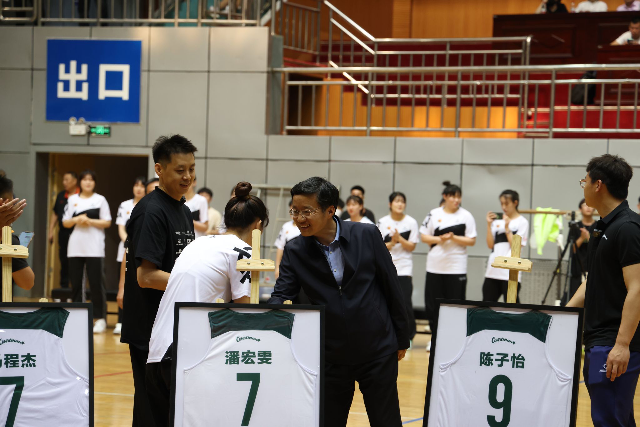 ,与校男篮队员开展交流,并进行了一场精彩的友谊赛。伴随着6月逐渐上升的气温,这一场比赛点燃了在场所有师生的心。