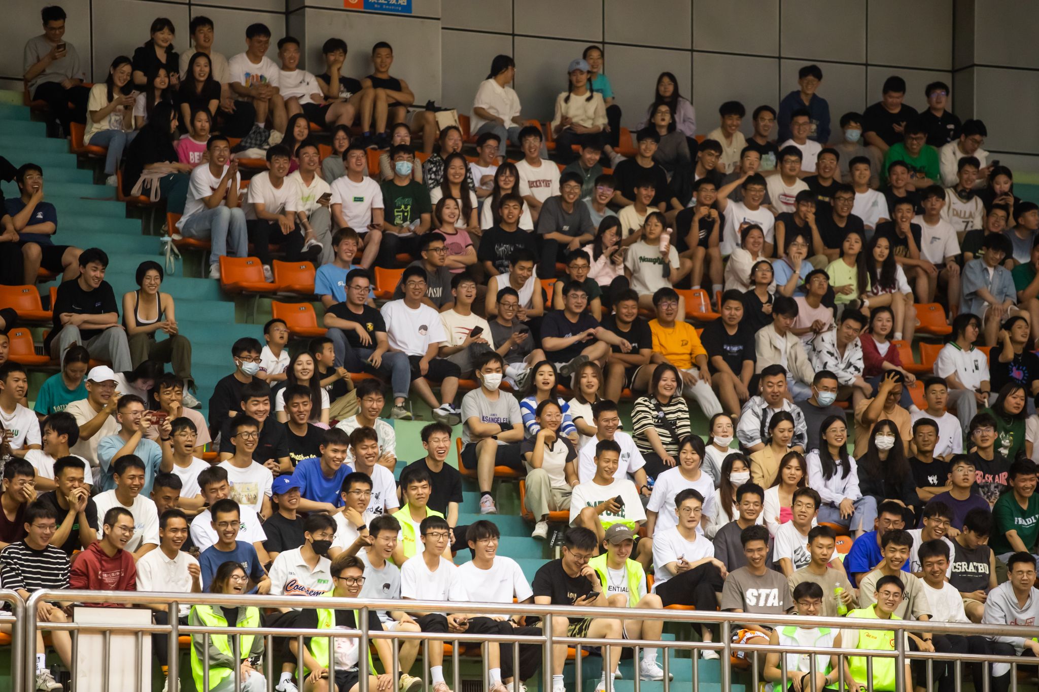 坞城校区室内体育馆,欢呼与呐喊瞬间充满整个场馆。在团队成员向在场学子亲切问好,与男篮队员友好交流后,比赛正式拉开帷幕。