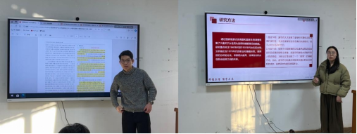 会议室举办。2023级硕士研究生关妮、2024级硕士研究生张建飞两位同学进行精读文献分享,2023级研究生何文辉、2022级研究生王聪聪两位同学为大家带来文献速递,学院全体研究生共同参与研讨交流。学院学科和研究生办公室主任王雁副教授主持论坛。
