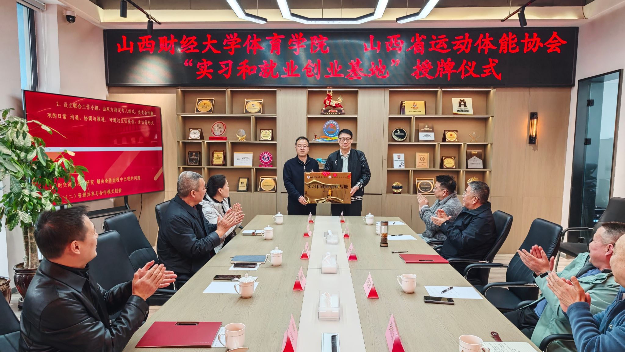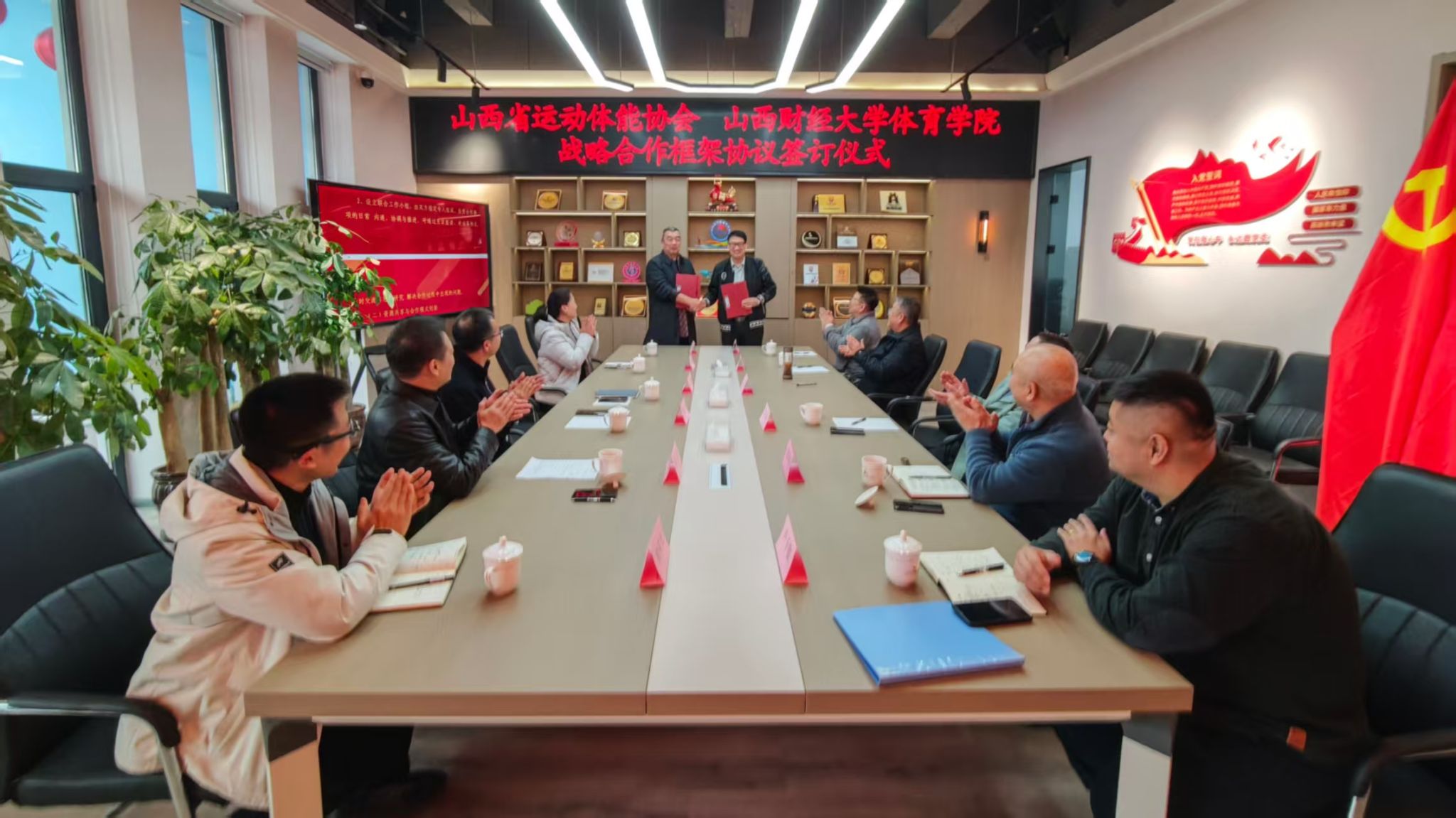 党委书记李群生、院长张路、副院长高进、体育经济与管理教研室和运动训练教研室有关负责人,山西省运动体能协会主席沈广晋,副主席段林贵、夏登勤等出席签约仪式。