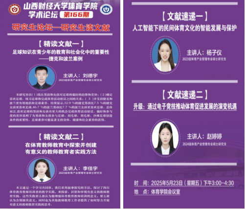常态化、高质量的学术品牌活动,不仅有效帮助研究生夯实学术基础、拓宽研究视野,更促进了学术思考与行业实践的有机融合。未来,学院将持续优化研究生培养机制,通过多元化的学术活动激发创新思维,致力于培养兼具深厚理论素养与扎实实践能力的研究型人才,为体育领域的高质量发展持续贡献力量。