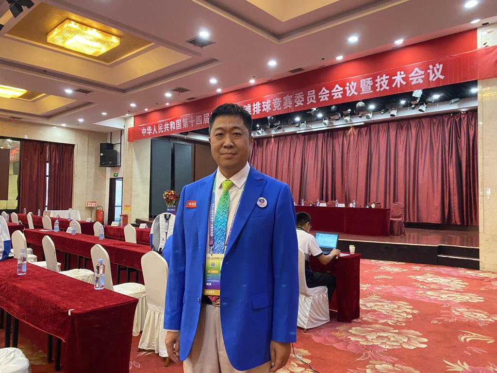 管向民老师是沙滩排球国家级裁判,连续四届担任全运会沙滩排球的裁判工作,担任本次全运会沙滩排球比赛决赛阶段执哨裁判员。