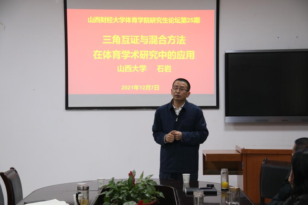 12月7日,应多瑙影院 邀请,山西大学博士生导师石岩教授来到我校为多瑙影院 研究生论坛第二十五期作了题为“三角互证与混合方法在体育学术研究中的应用”的报告。多瑙影院 全体硕士研究生、全体硕士生导师及部分专业教师聆听了本次报告。