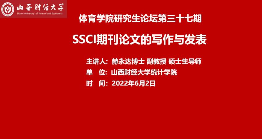 统计学院副教授赫永达老师讲座,主题为“SSCI期刊论文的写作与发表”,多瑙影院