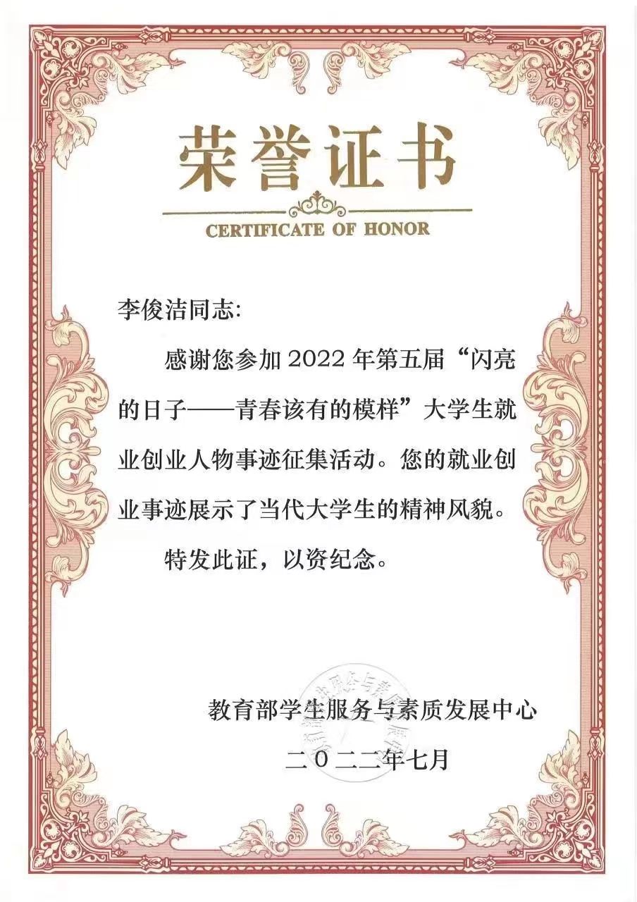 在众多身份中,他最喜欢的便是“创业者”。“我体会到了不一样的生活方式,学生不仅仅只能用所学知识来应付考试,还可以用来为社会、为人民做出自己的贡献。”到现在为止,李俊洁已经帮助很多同学成功考取所向往院校的研究生,实现了自己的梦想。未来,他将继续承载着大家的期待,为同学们提供咨询和服务,帮助到更多有需要的同学,一路同行,一起追梦。
