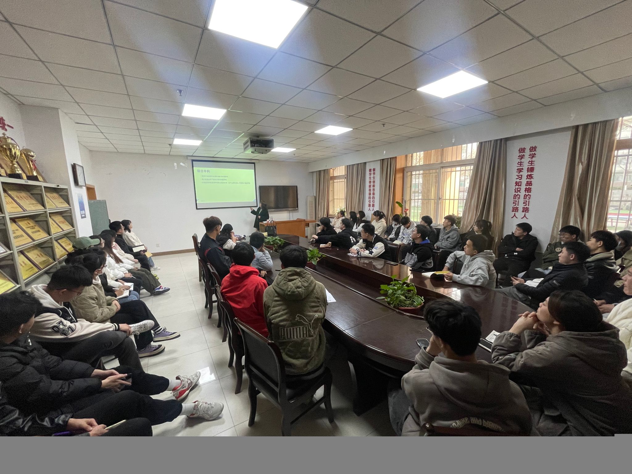 本次专题辅导会进一步加强了学院学生对大创项目的认识,激发了学生的创新创业意识,也为学生接下来的修改完善申报书指明了方向。最后,高进对本次辅导会进行了总结,对王树宏教授表示感谢,并希望今年学院大创项目再创新高。