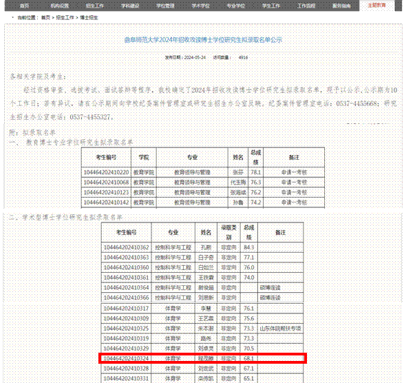 多瑙影院 2020级体育产业管理硕士研究生程茂滕(硕士生导师:张路),于近日被曲阜师范大学录取为博士研究生。